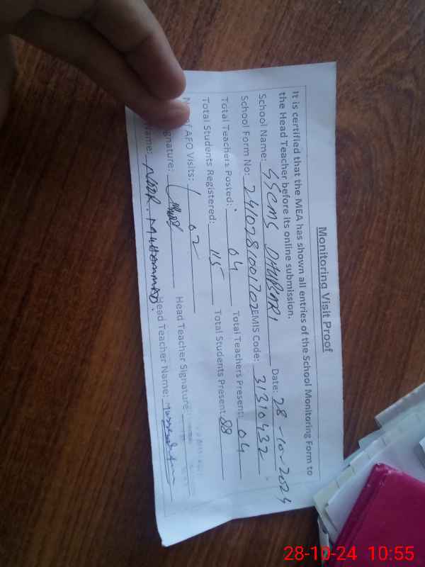 | Certified that this School was Inspected by the Undersigned MEA/DMO Today and the Information Stated Above is as Per Record. | |||||