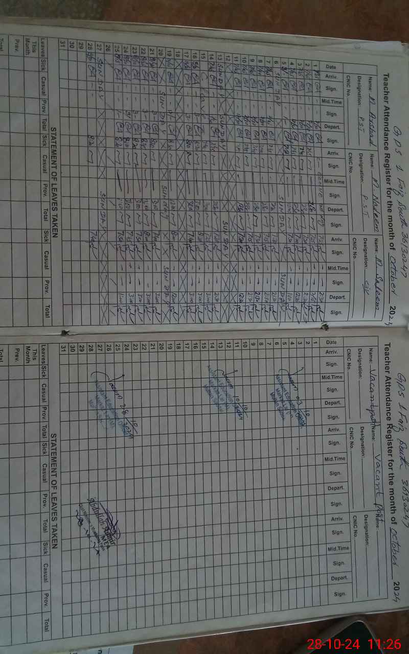 | No. of Students Present - Female | 6 | 0 | 5 | 6 | 3 | 2 | 1 | 1 | 24 | |||||||