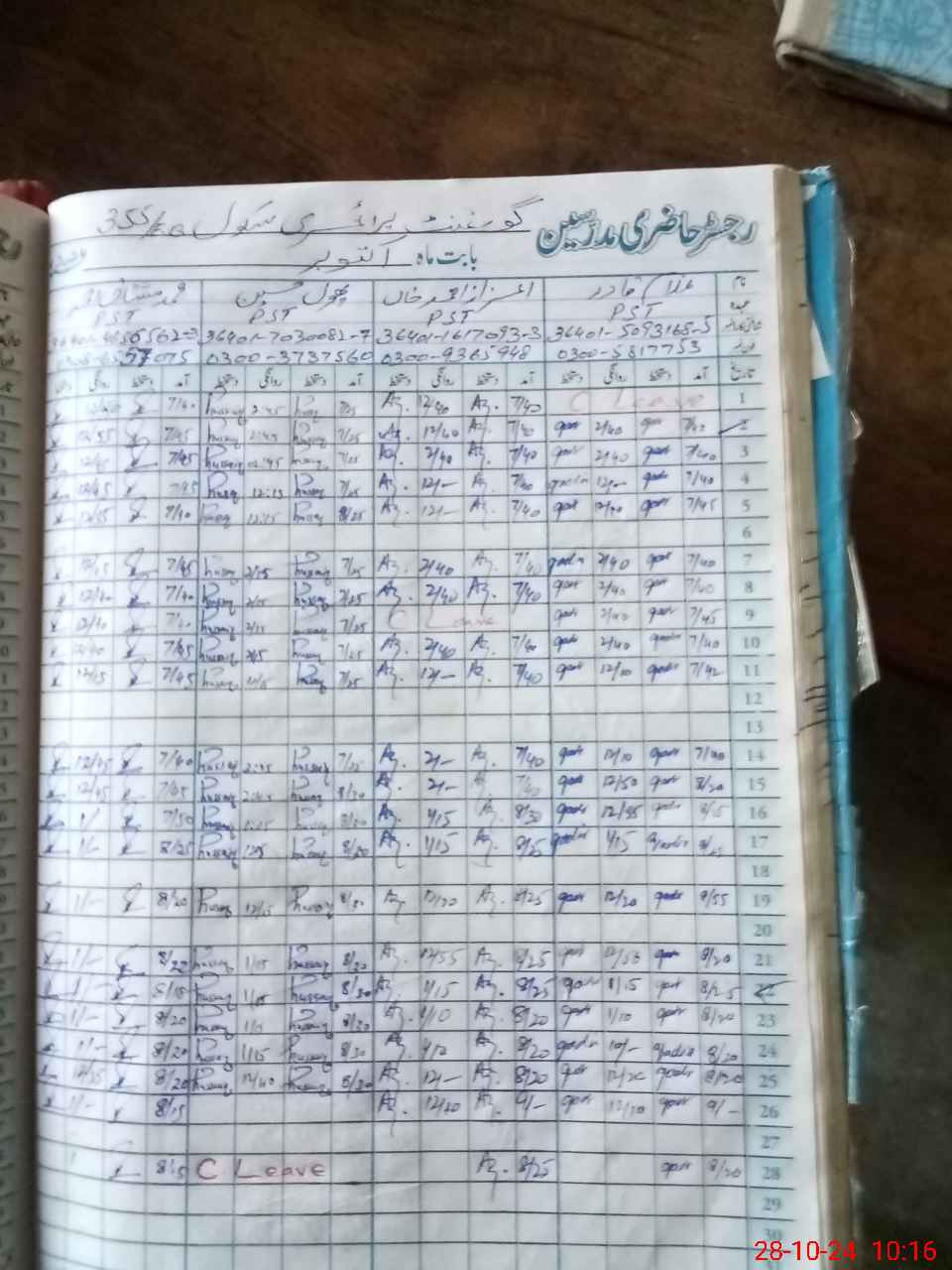 | Leave | Duty | Absent | Maternity | Medical | Ex- Pak |