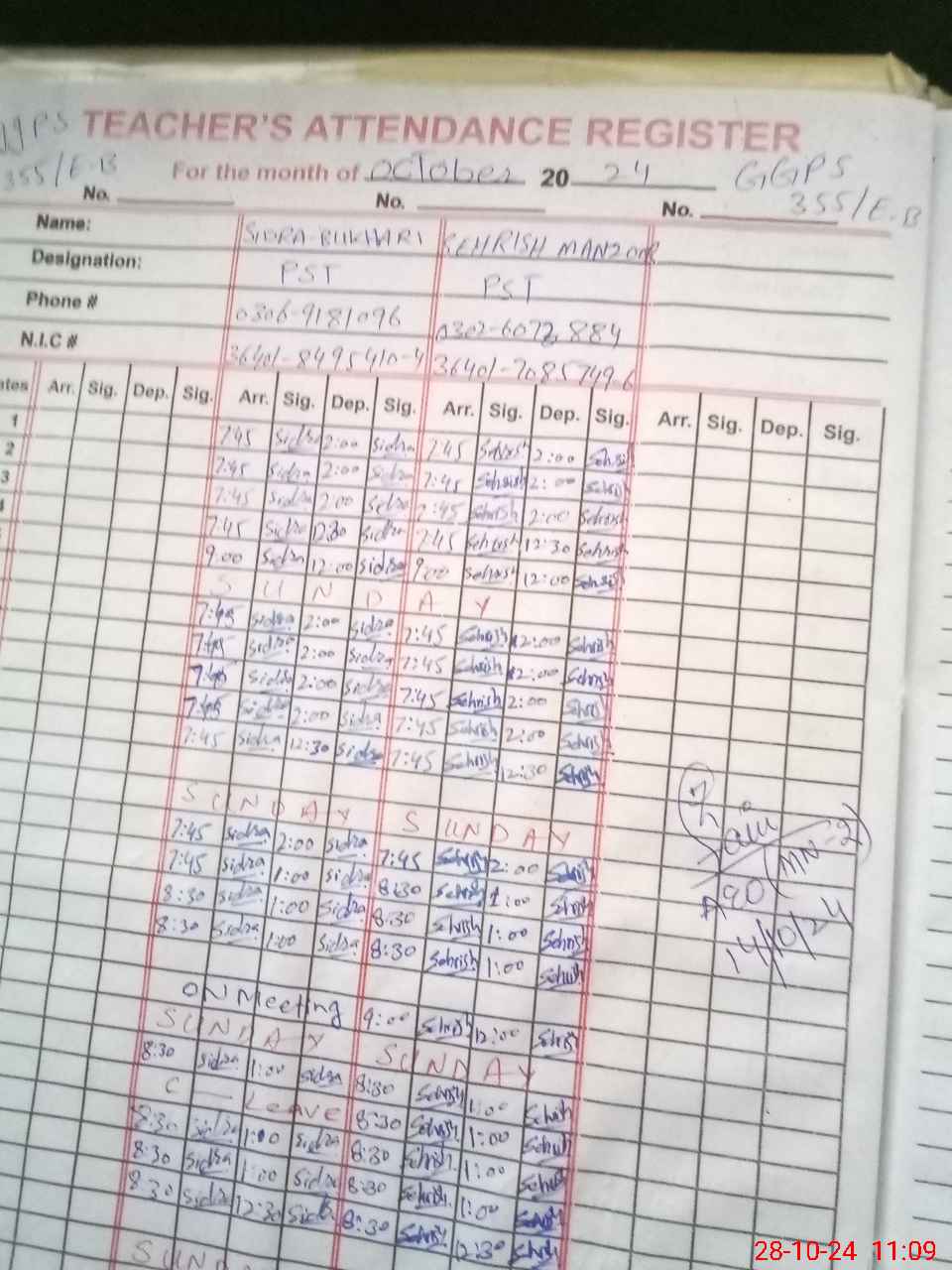 | Name: SE**** MA**** Designation: (School Headmaster's/Headmistress's) PST Phone/Cell Number: 03**** |