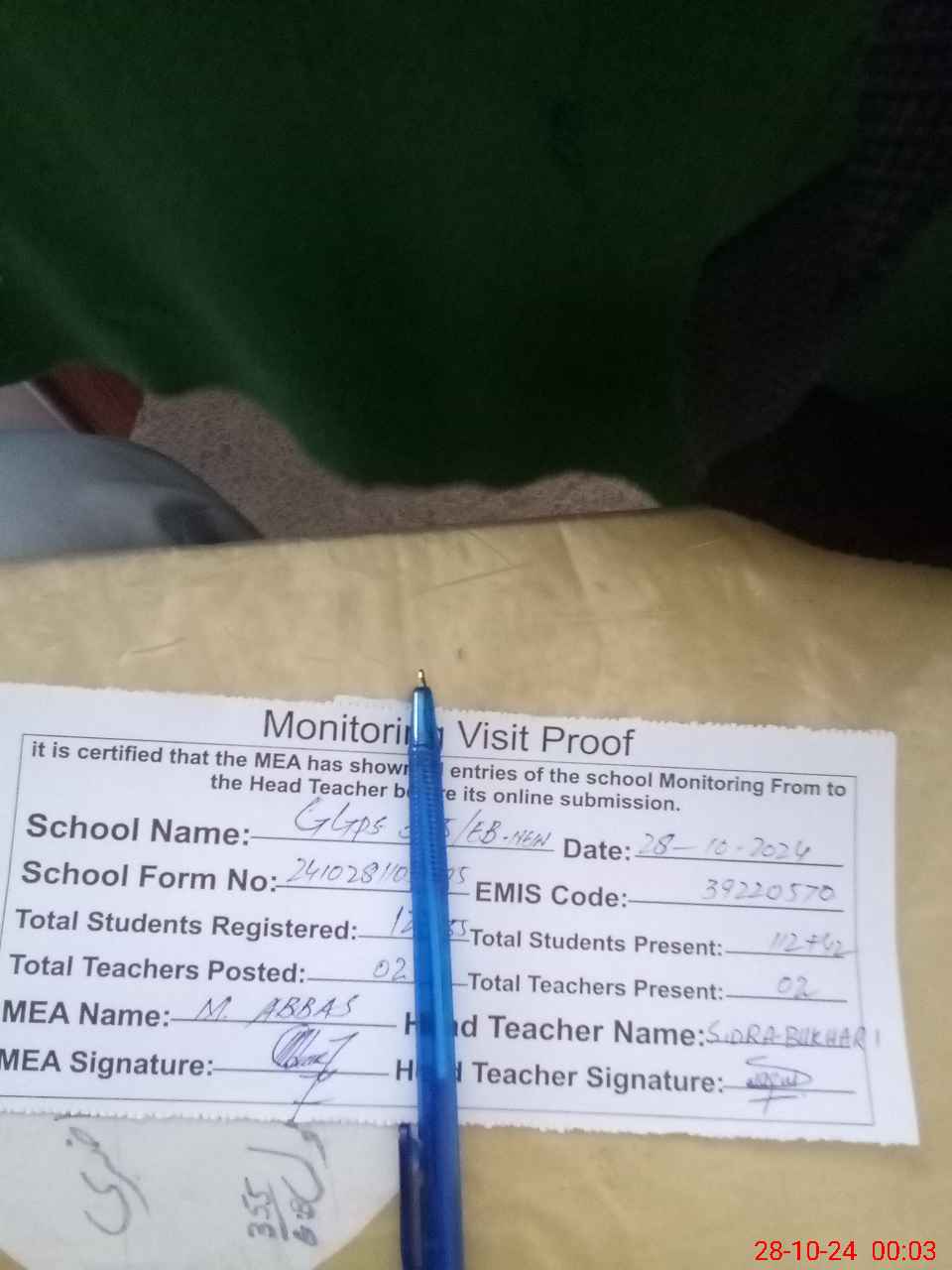 | Certified that this School was Inspected by the Undersigned MEA/DMO Today and the Information Stated Above is as Per Record. | |||||