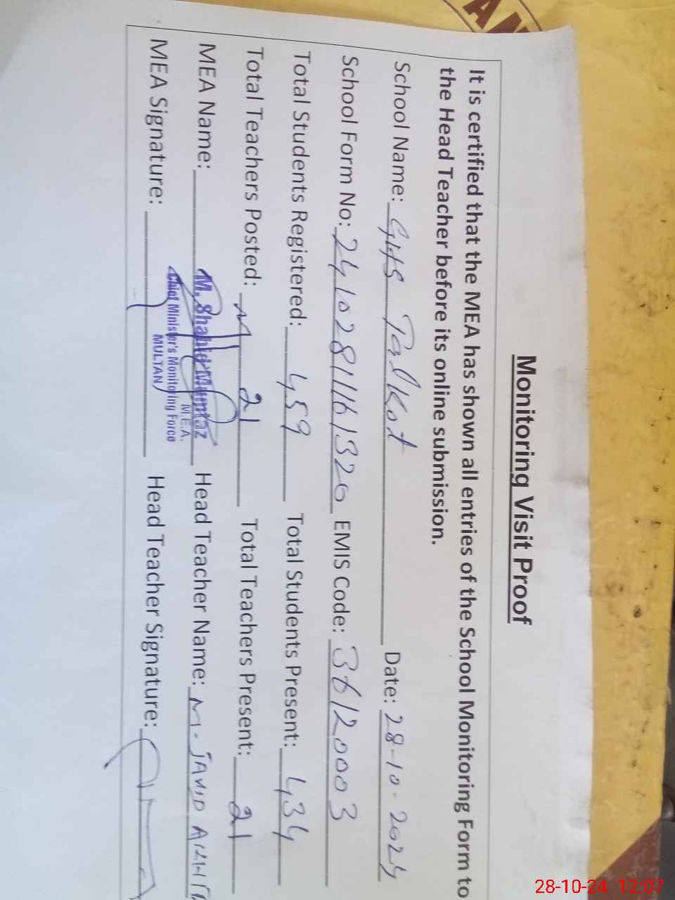 | EMIS Code: 36120003 | Name of School: GHS TALKOT SHUJA ABAD | |||