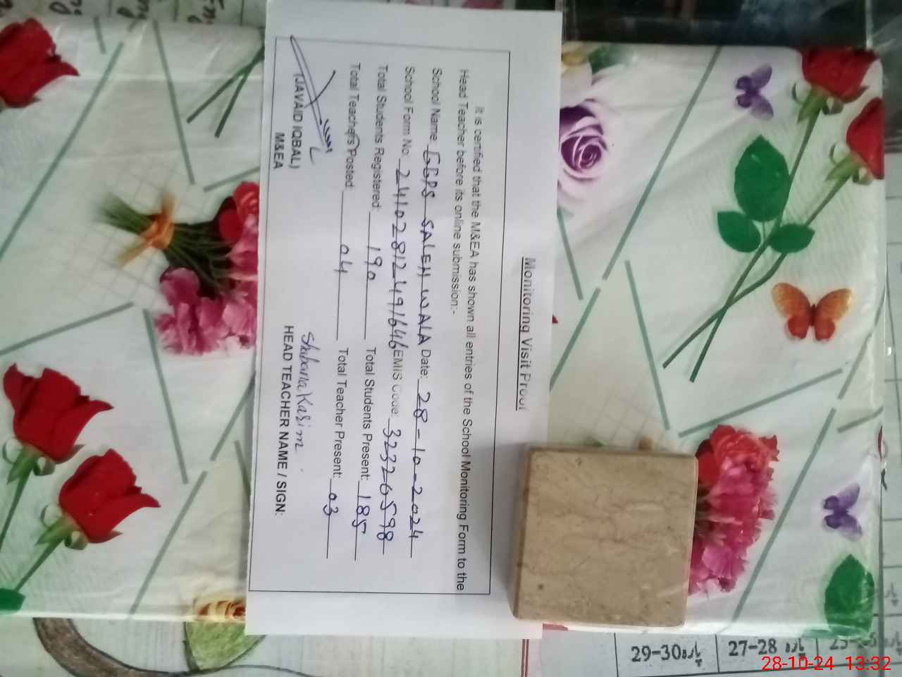 | EMIS Code: 32320598 | Name of School: GGPS SALEH WALA | |||