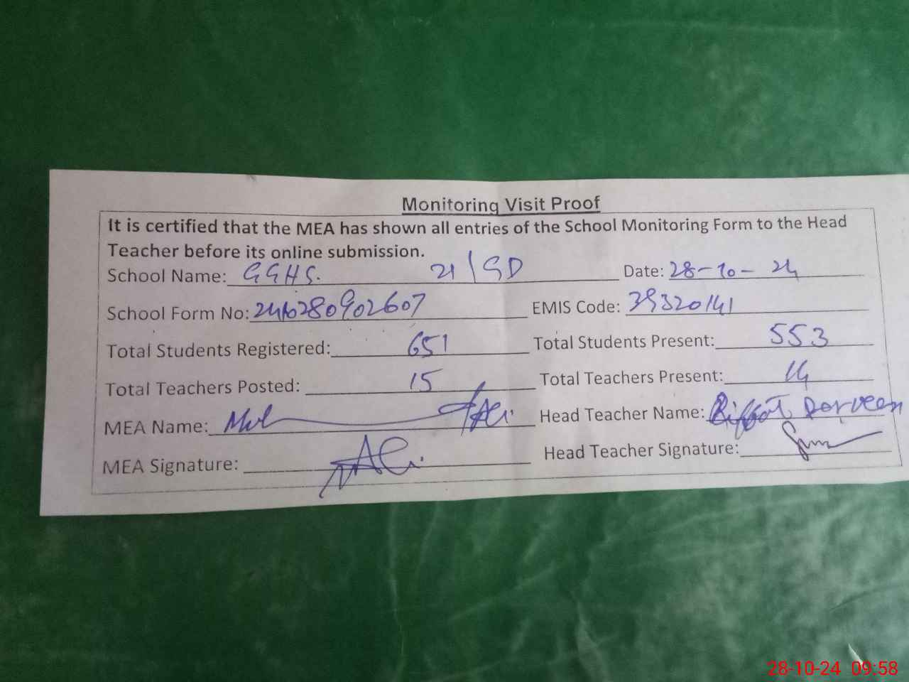 | EMIS Code: 39320141 | Name of School: GGHS 21/G.D | |||
