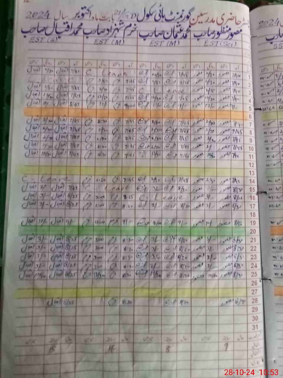 | Leave | Duty | Absent | Maternity | Medical | Ex- Pak |