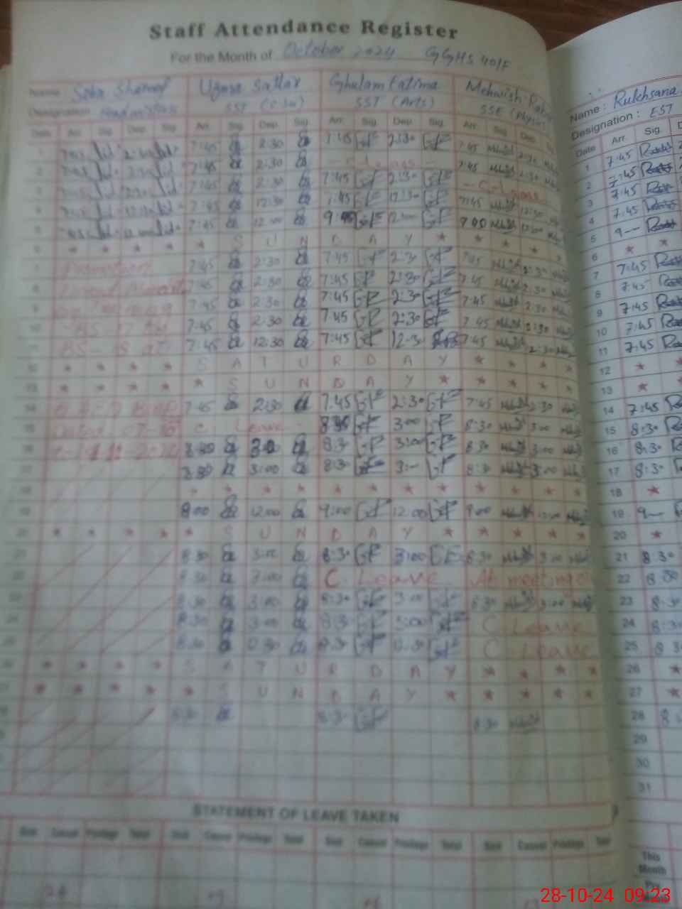 | 31**** | Gh**** Ra**** Ba**** | EST | Regular | 0 | 0 | 0 | 0 | 0 | 0 | 0 | 0 | 0 | Absent (Un-Authorized) |