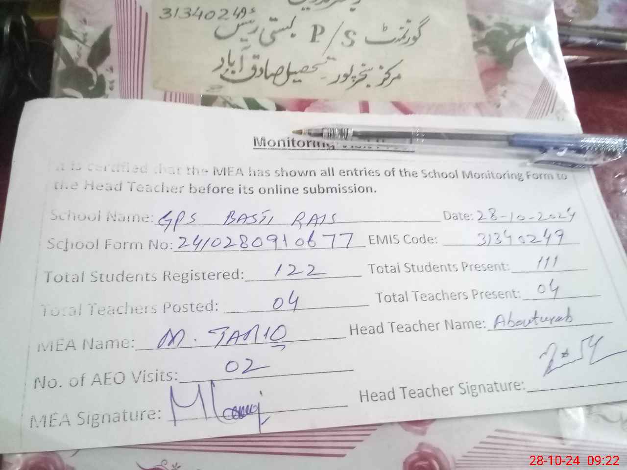 | EMIS Code: 31340249 | Name of School: GPS BASTI RAIS | |||