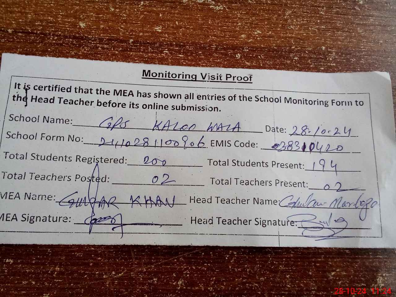 | EMIS Code: 38310420 | Name of School: GPS KALOO WALA | |||