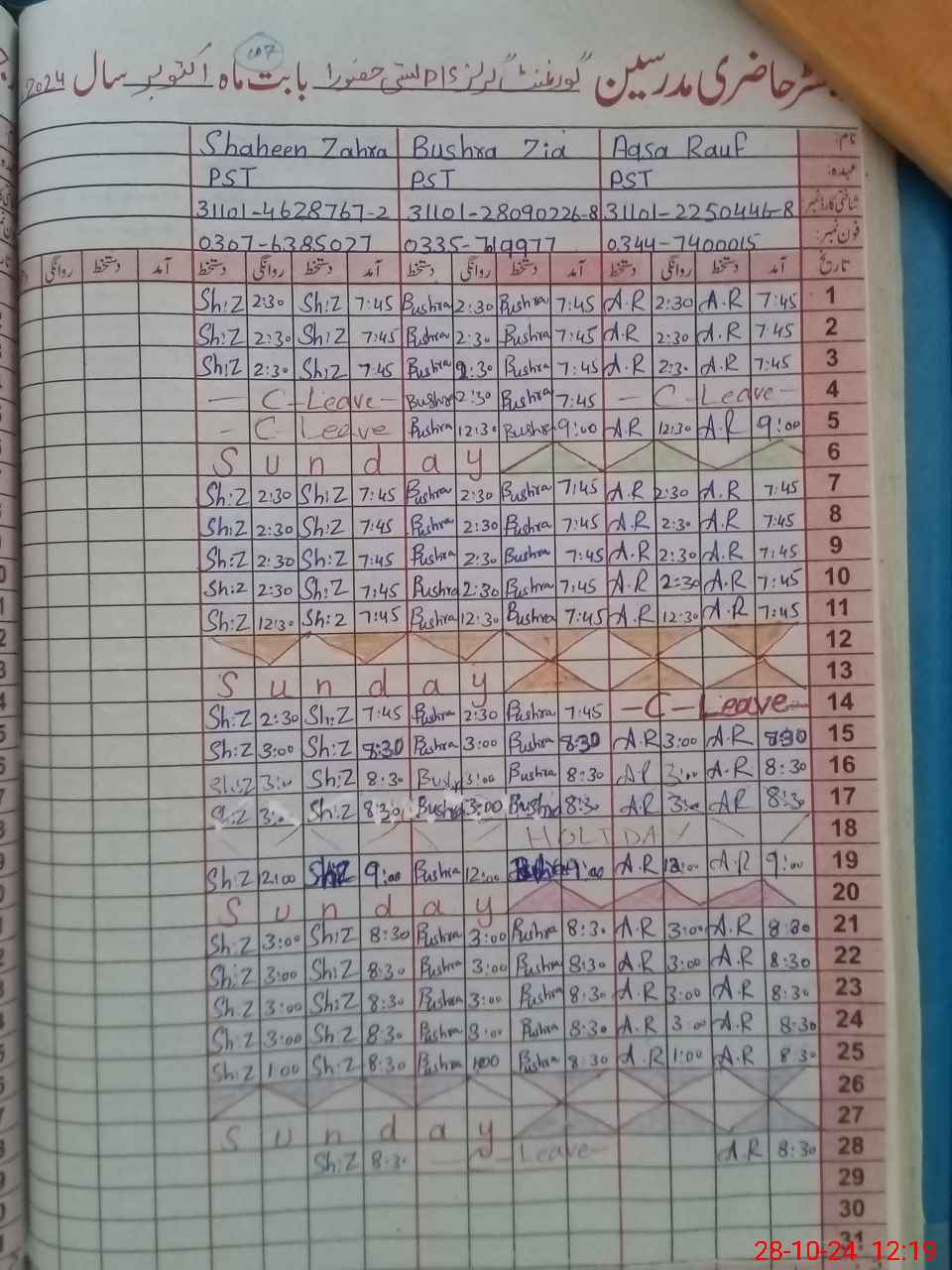 | 31**** | Bu**** Zi**** Kh**** | PST | Regular | 2 | 0 | 0 | 0 | 0 | 0 | 0 | 0 | 2 | Casual |