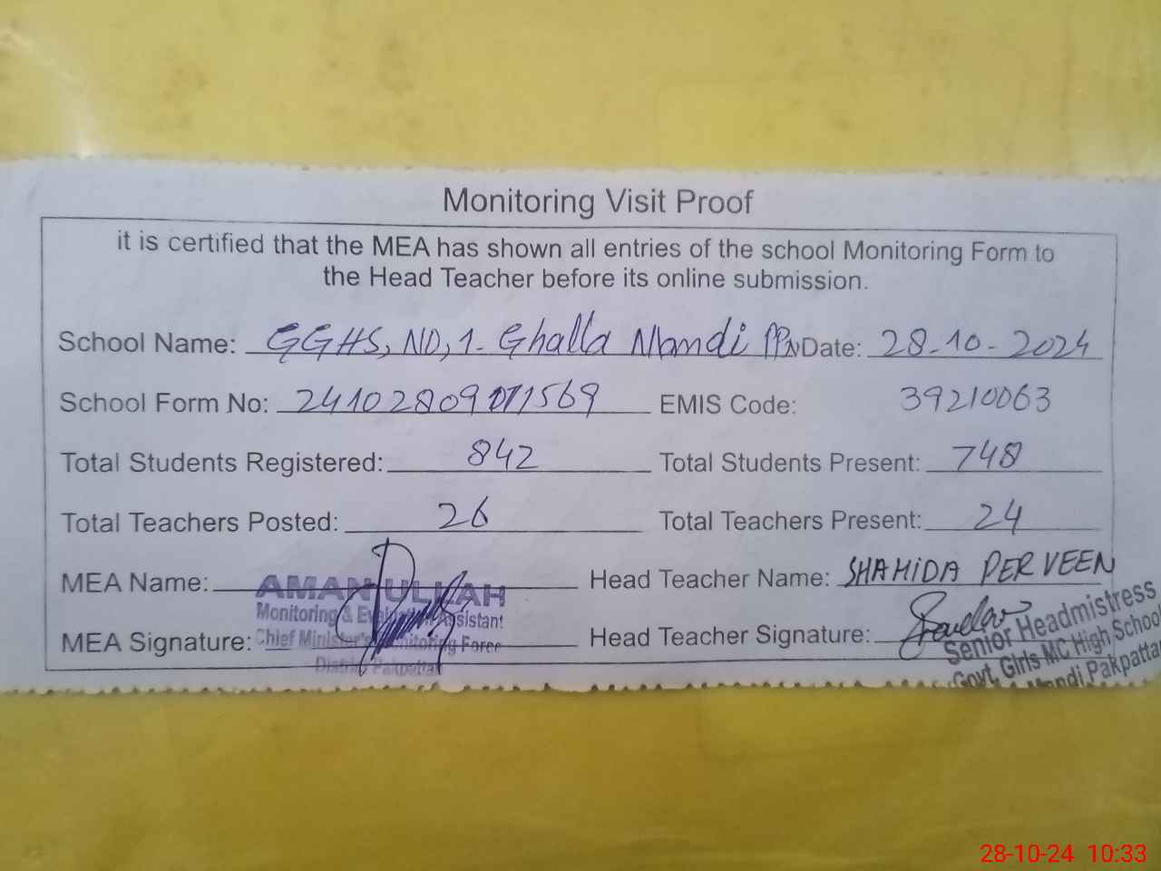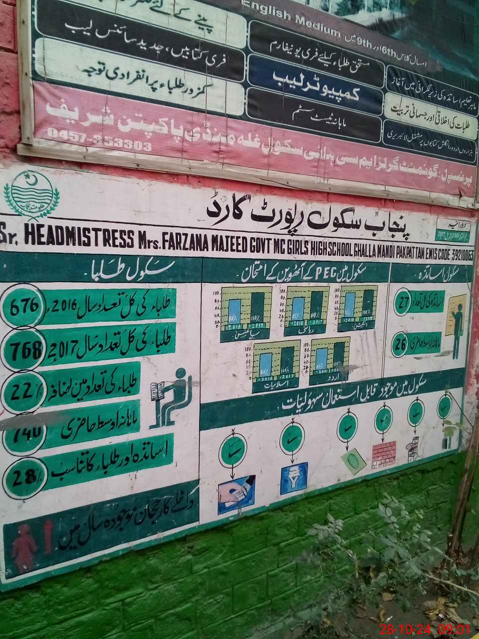 | EMIS Code: 39210063 | Name of School: GGHS MC NO. 1 GHALLA MANDI PAKPATTAN | |||