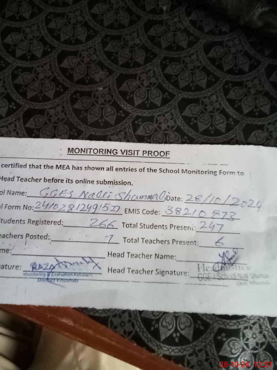 | EMIS Code: 38210873 | Name of School: GGHS NALLI SHUMALI KHUSHAB | |||