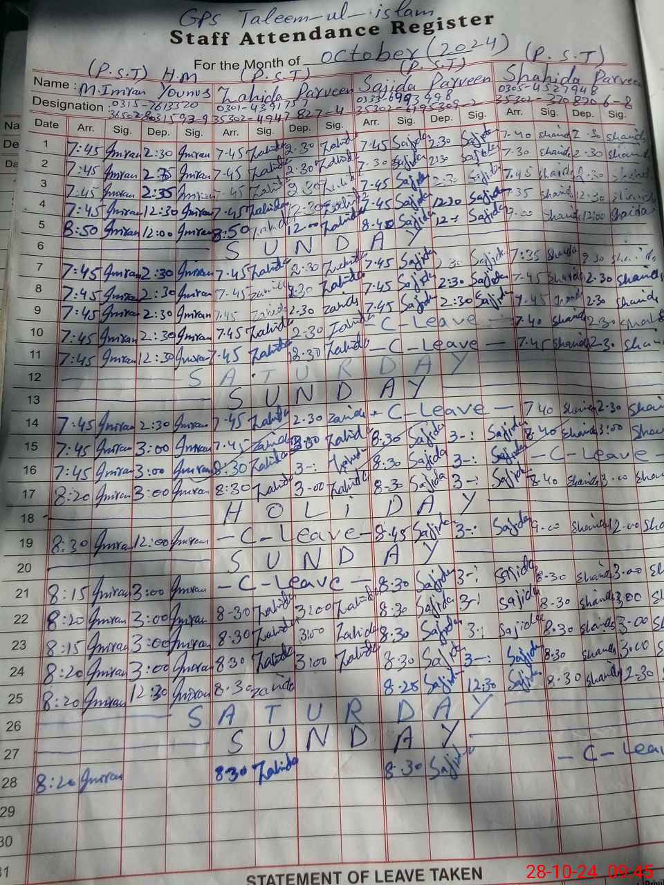 | Name: Sh**** Pa**** Designation: (School Headmaster's/Headmistress's) PST Phone/Cell Number: 03**** |