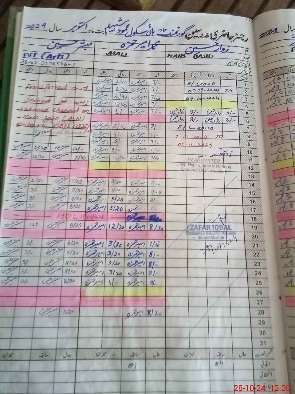 | CNIC | Full Name | Designation | R/C | Absence during last cal. month |