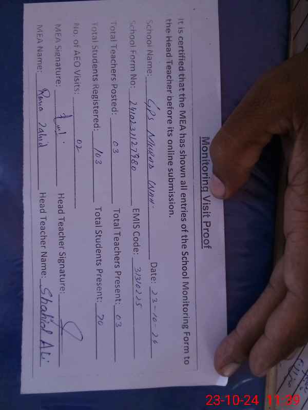 | EMIS Code: 31310225 | Name of School: GPS MURAD WAH PO KOTLA PATHAN | |||