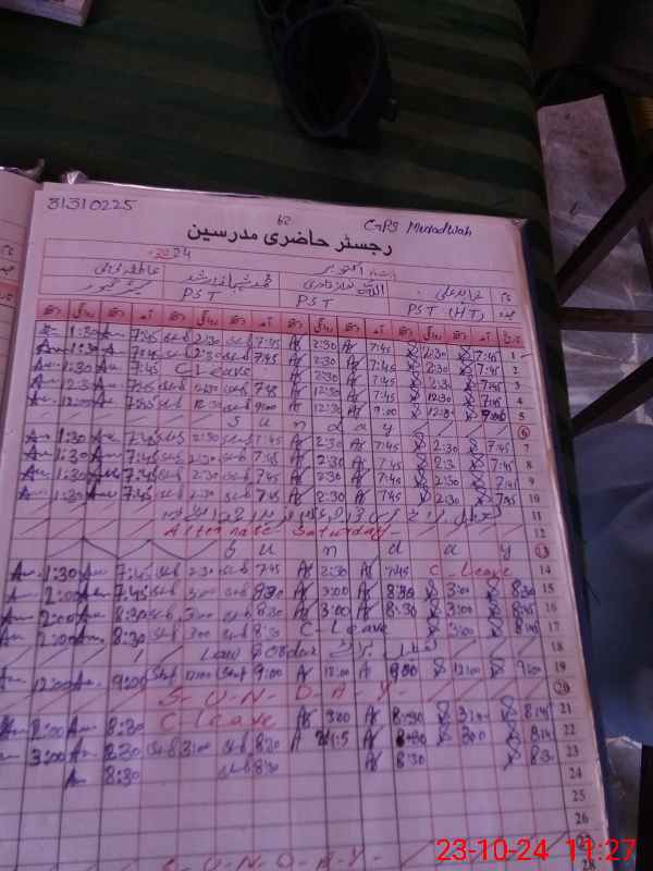 | Name: Sh**** Al**** Designation: (School Headmaster's/Headmistress's) PST Phone/Cell Number: 03**** |