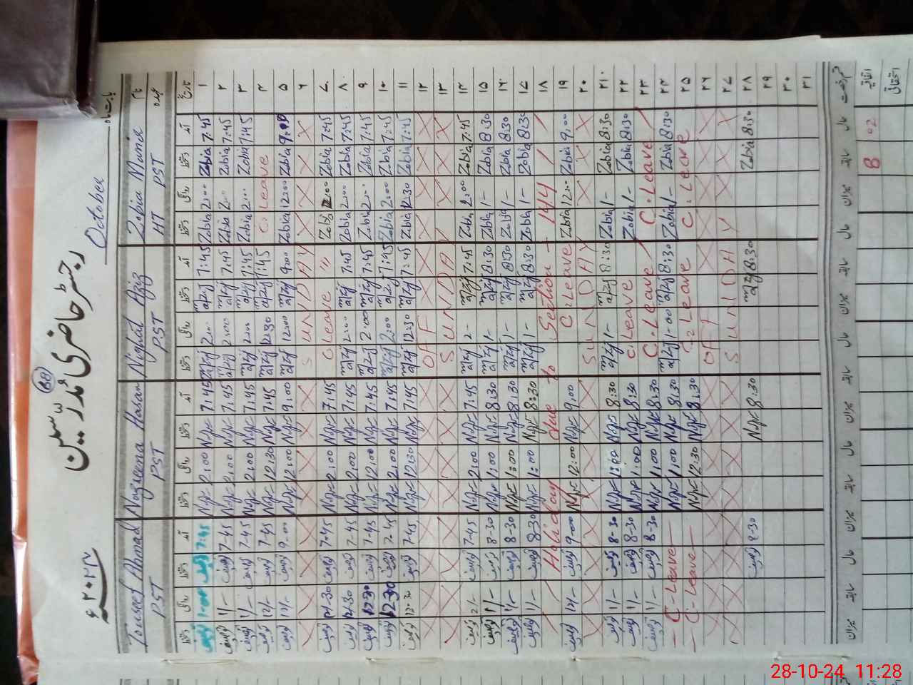 | Leave | Duty | Absent | Maternity | Medical | Ex- Pak |