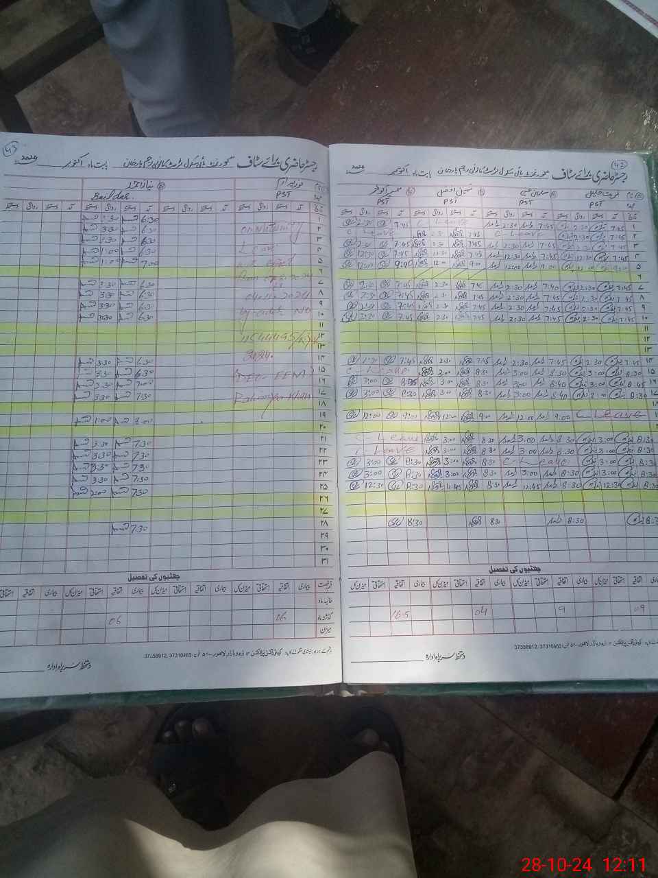 | CNIC | Full Name | Designation | R/C | Absence during last cal. month |
