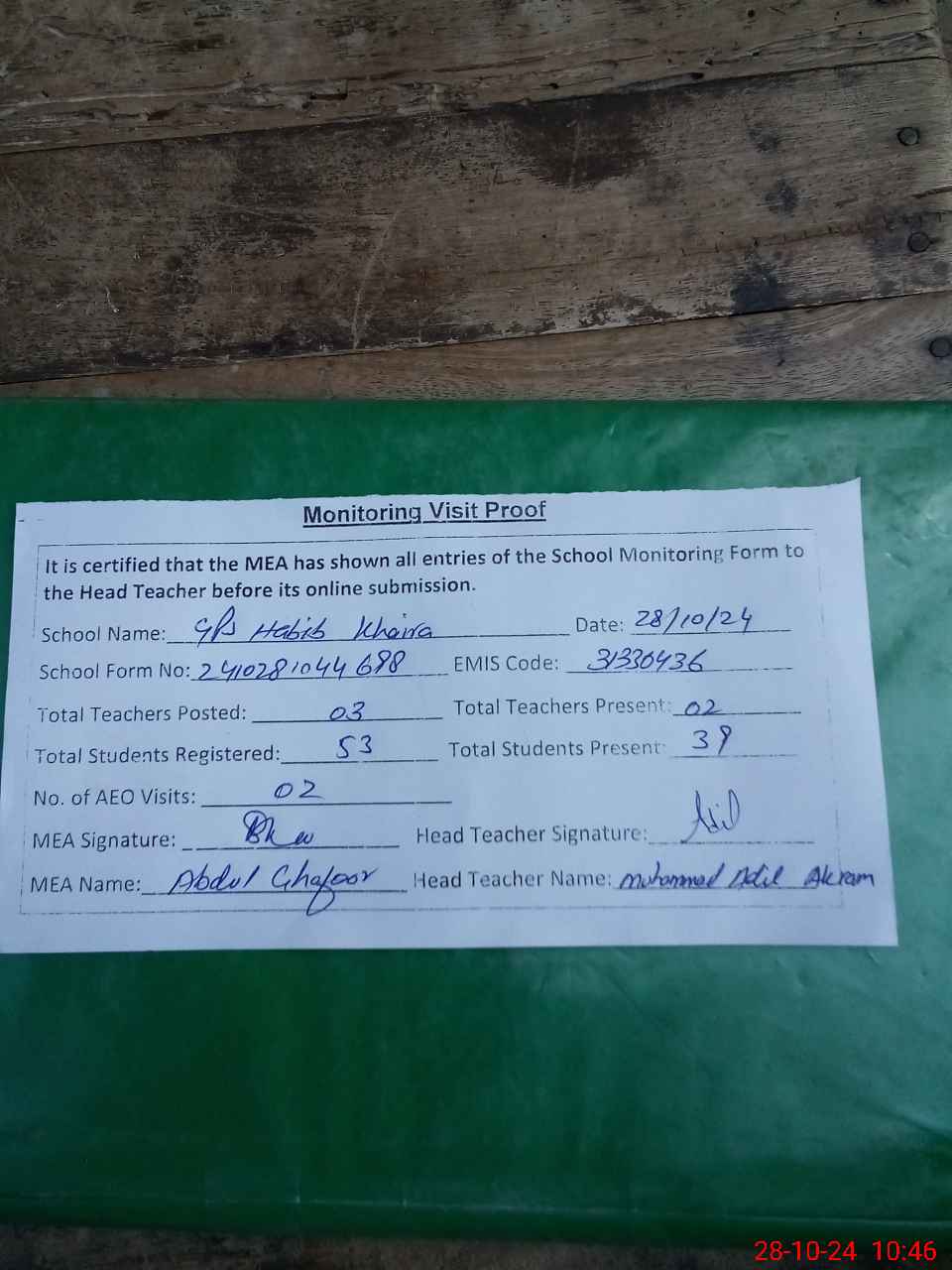 | EMIS Code: 31330436 | Name of School: GPS HABIB KHERA | |||