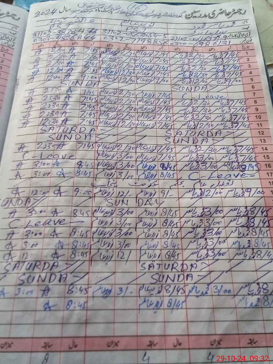 | CNIC | Full Name | Designation | R/C | Absence During Last Calender Month |