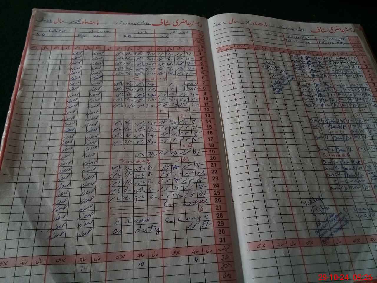 | Leave | Duty | Absent | Maternity | Medical | Ex- Pak |