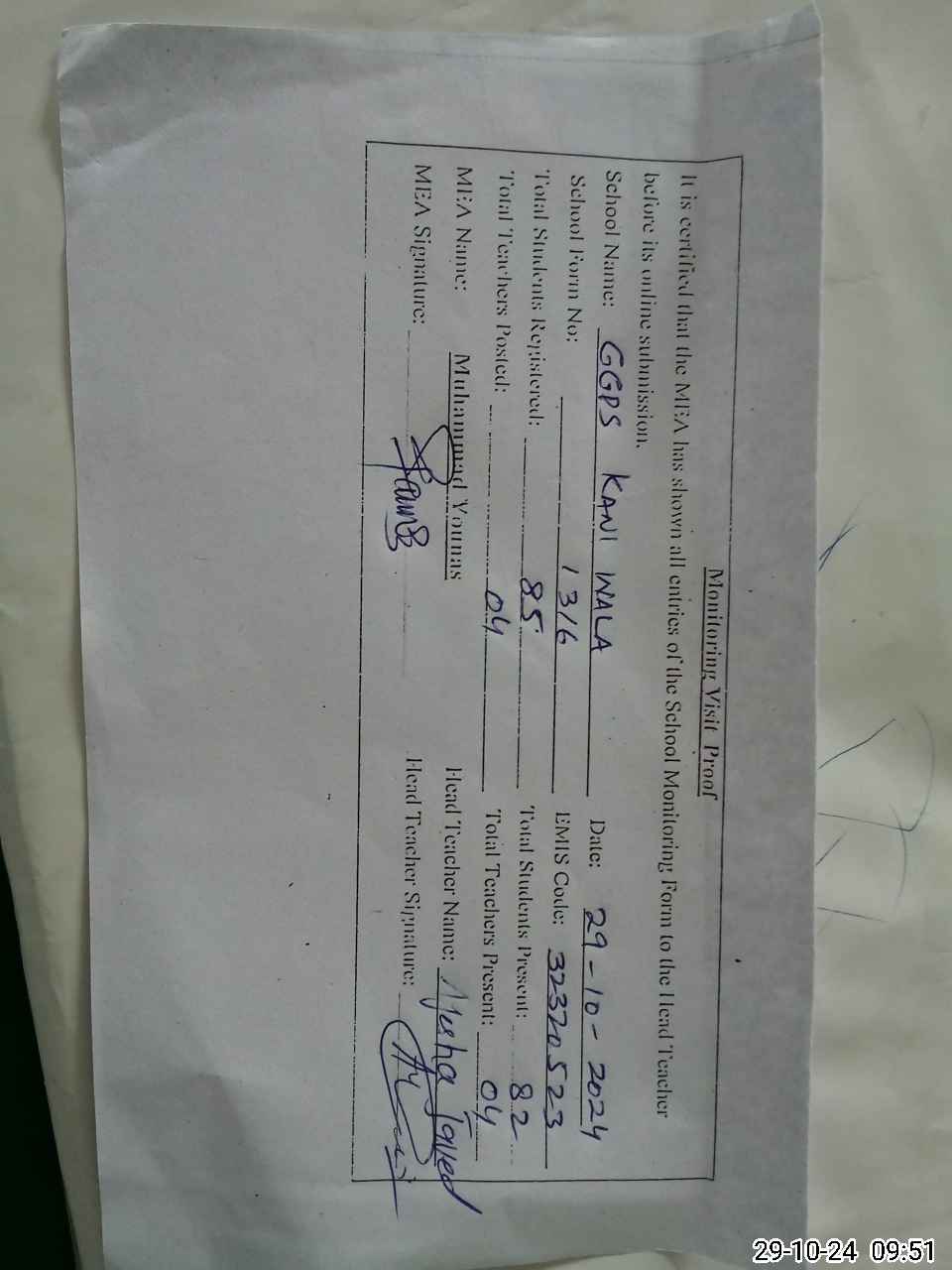 | EMIS Code: 32320523 | Name of School: GGPS KANI WALA | |||