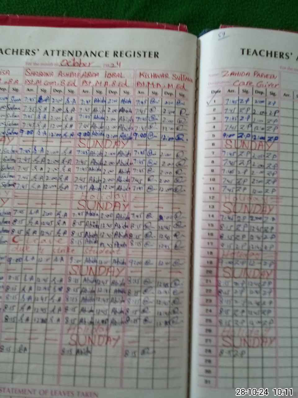 | Leave | Duty | Absent | Maternity | Medical | Ex- Pak |