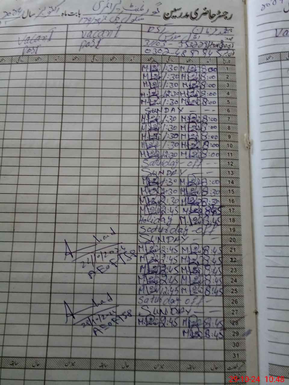 | CNIC | Full Name | Designation | R/C | Absence During Last Calender Month |