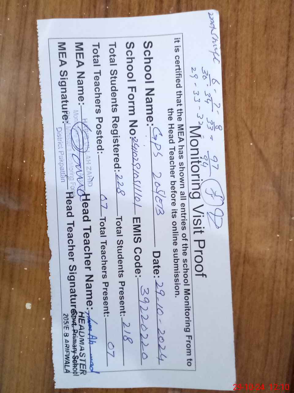 | EMIS Code: 39220220 | Name of School: GPS 205 EB | |||