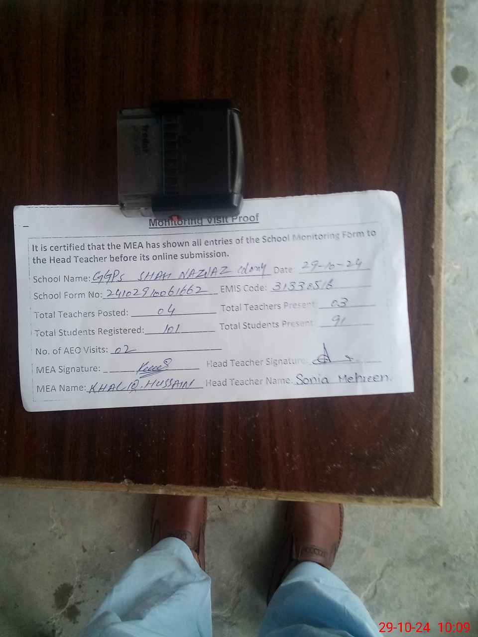 | EMIS Code: 31330516 | Name of School: GGPS SHAH NAWAZ COLONY | |||