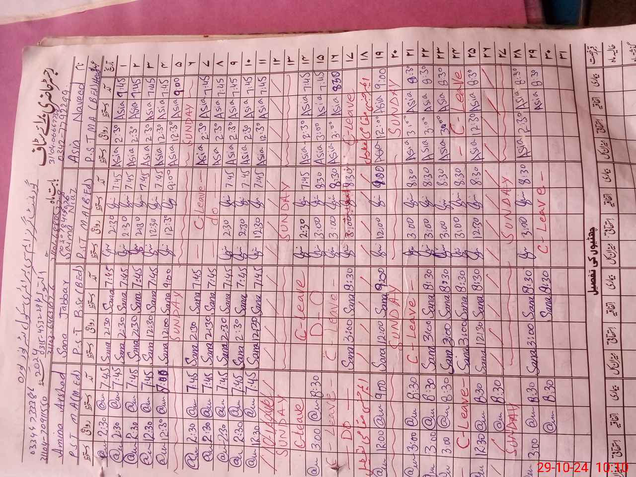 | Leave | Duty | Absent | Maternity | Medical | Ex- Pak |