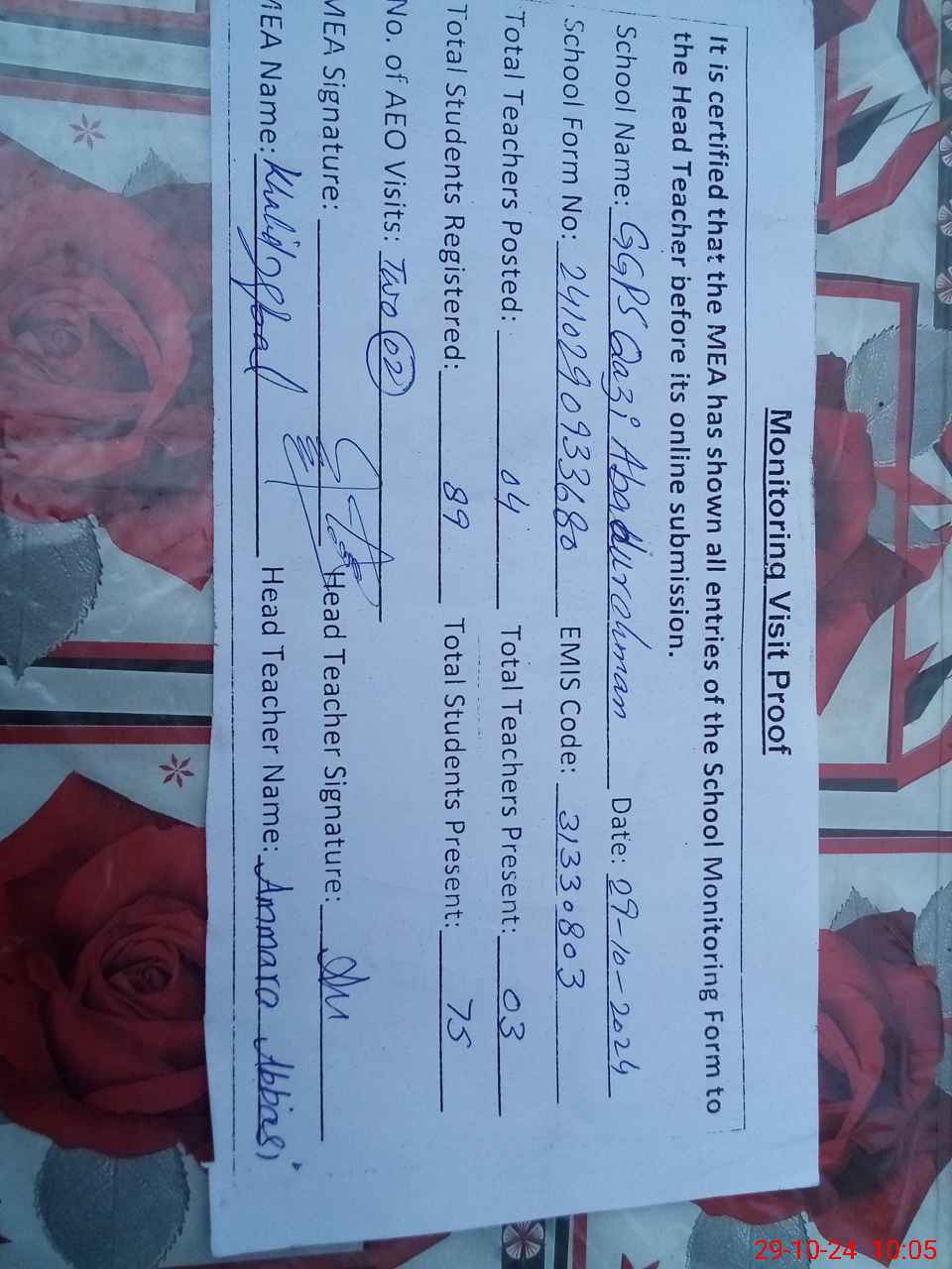 | EMIS Code: 31330803 | Name of School: GGPS QAZI ABADUR REHMAN | |||