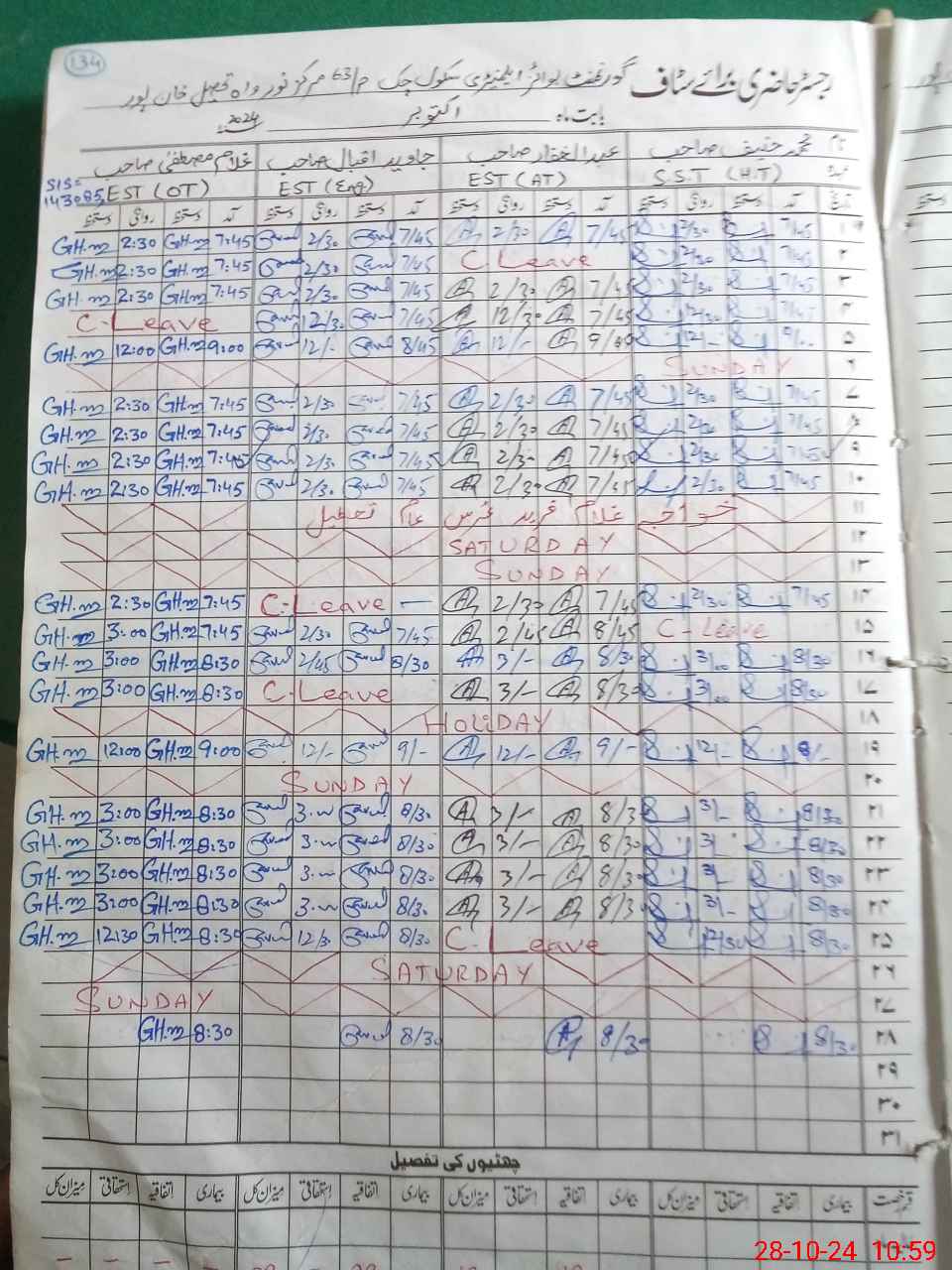 | CNIC | Full Name | Designation | R/C | Absence During Last Calender Month |