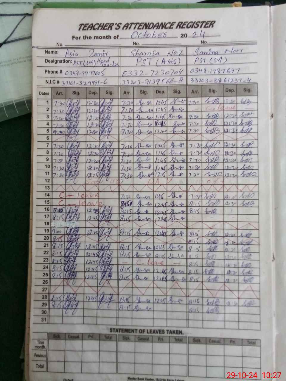 | Name: AS**** ZA**** Designation: (School Headmaster's/Headmistress's) PST Phone/Cell Number: 03**** |