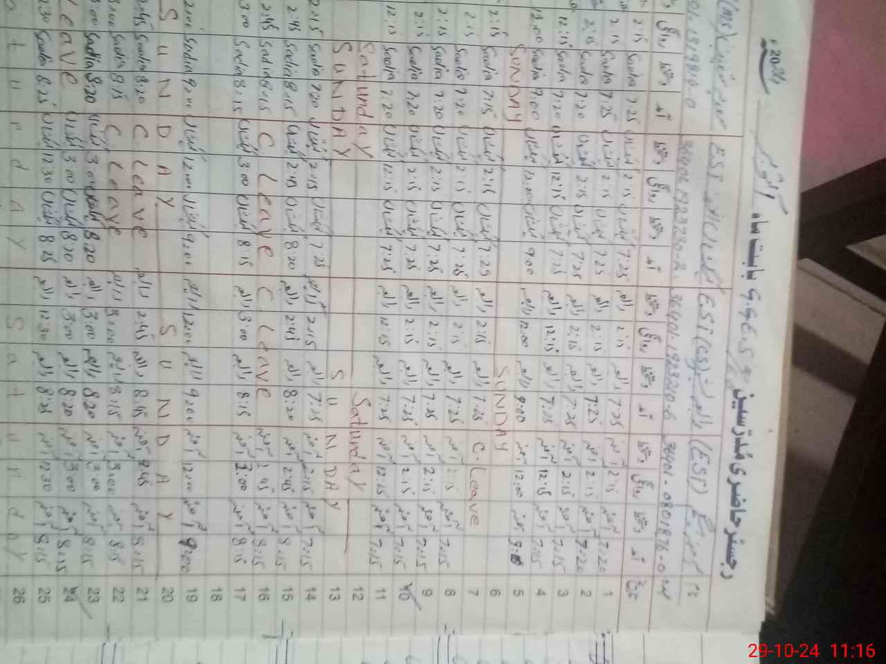 | CNIC | Full Name | Designation | R/C | Absence During Last Calender Month |