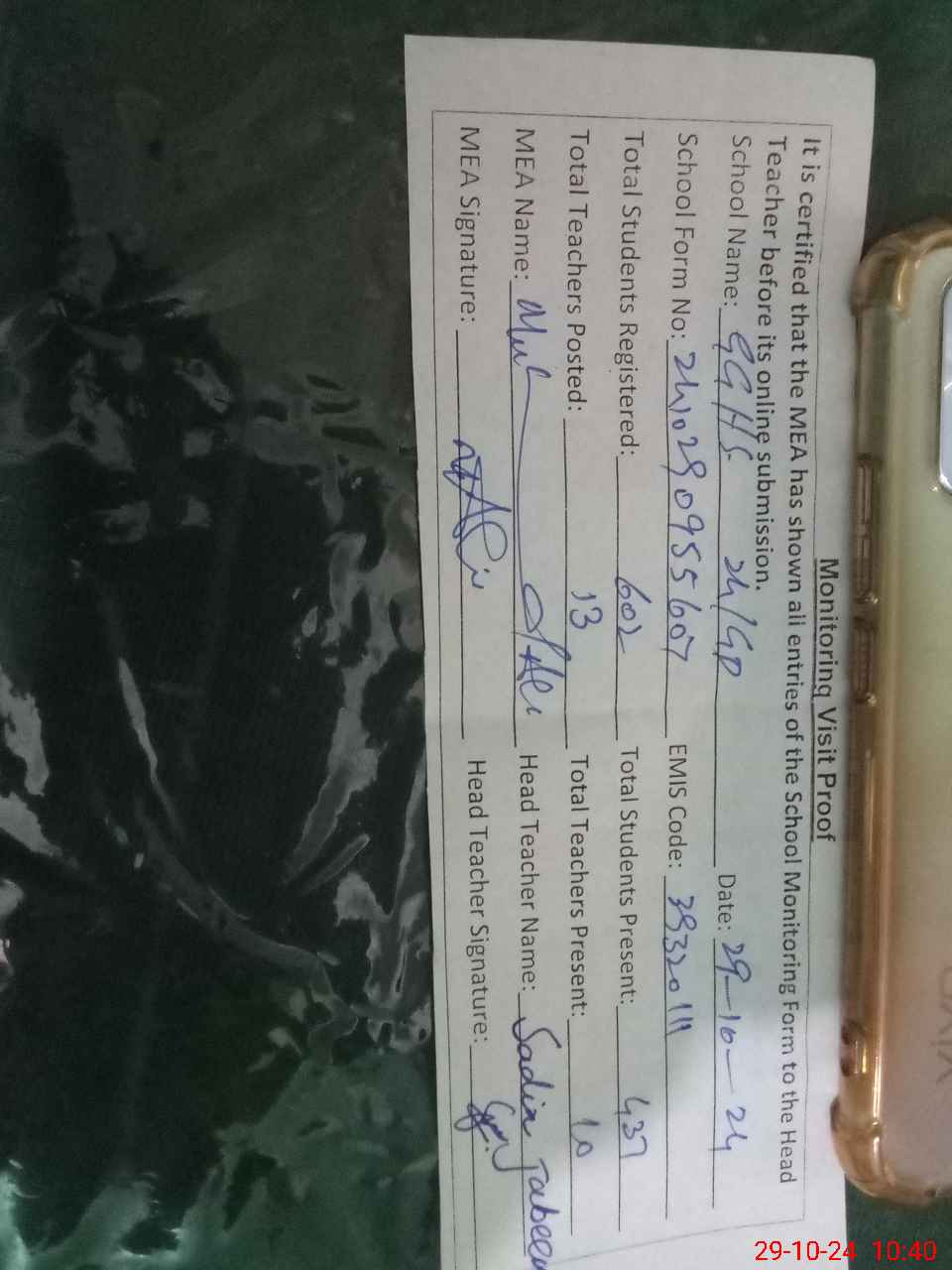| EMIS Code: 39320111 | Name of School: GGHS 24/G.D | |||