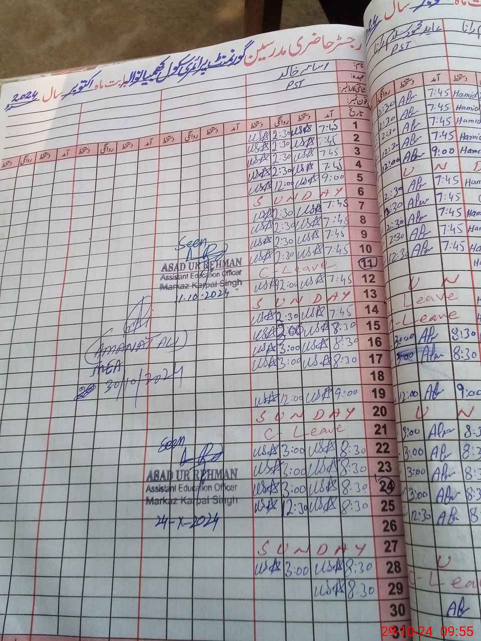 | 35**** | Ha**** Ma**** Sa**** Ra**** | ESE | Contract | 0 | 0 | 0 | 0 | 0 | 0 | 0 | 0 | 0 | Exam Duty |