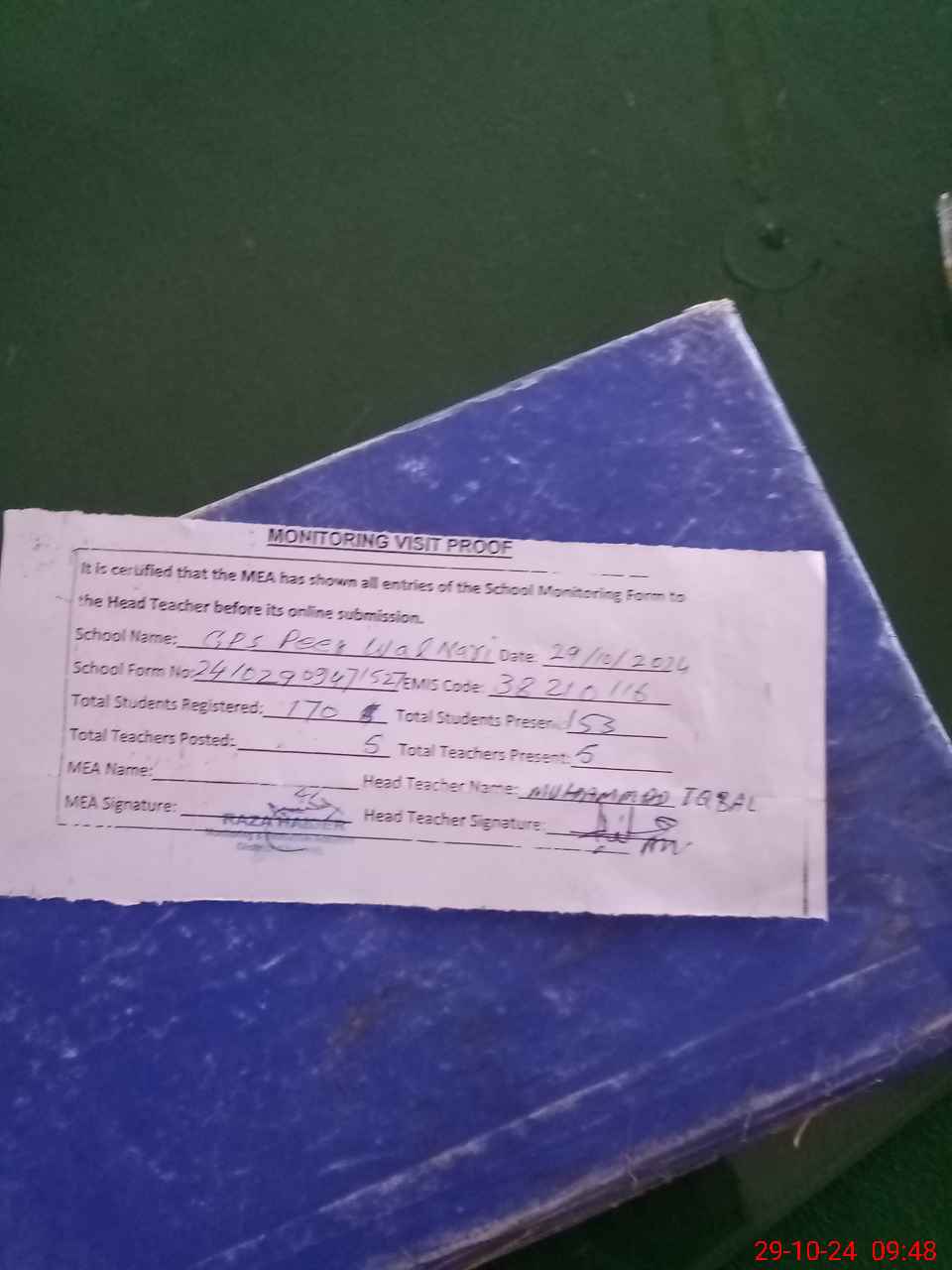 | EMIS Code: 38210116 | Name of School: GPS PEER WAL NARI | |||