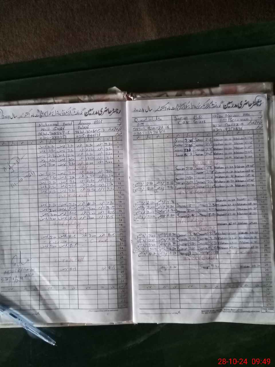 | CNIC | Full Name | Designation | R/C | Absence During Last Calender Month |