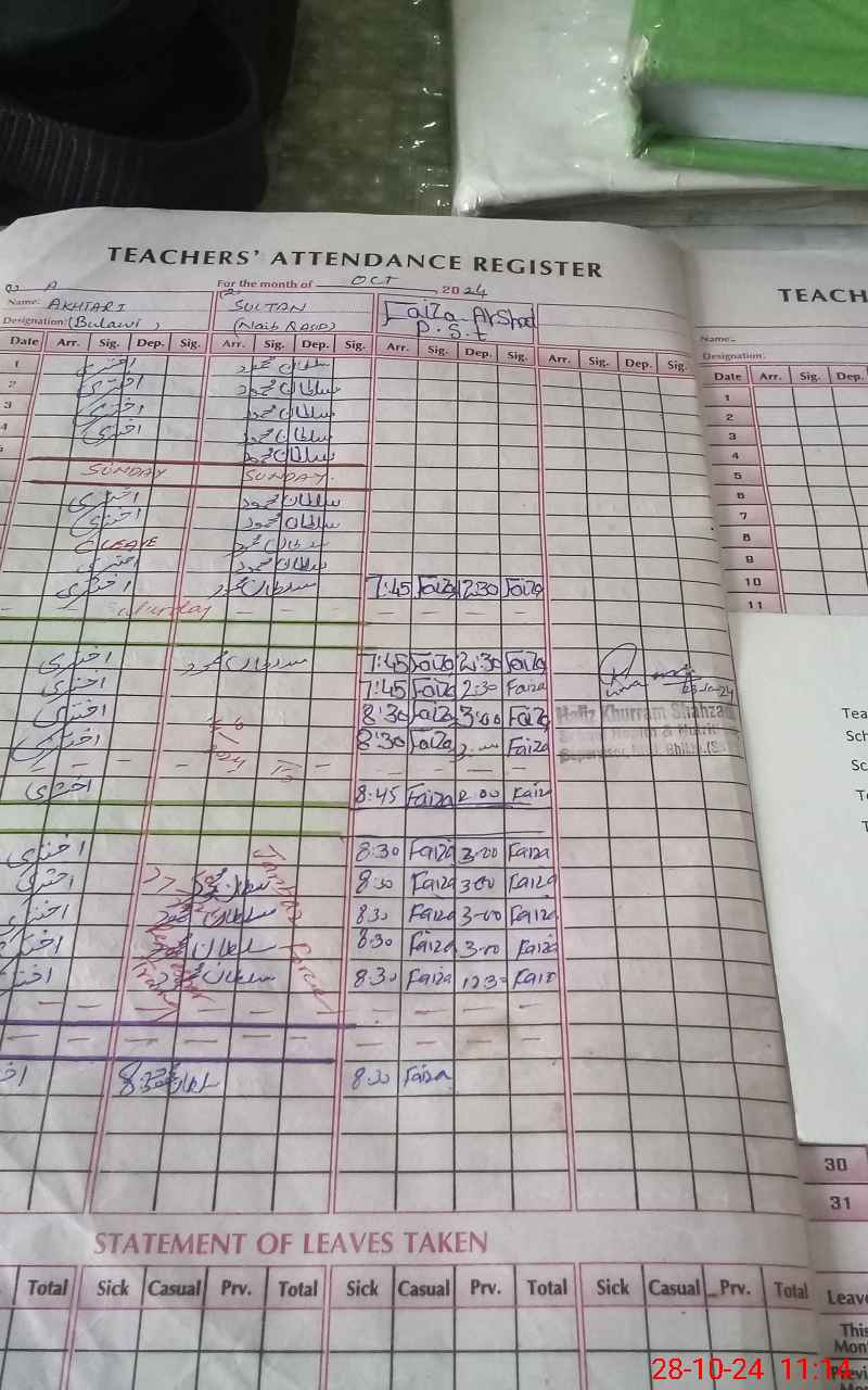 | 35**** | Sa**** | BLAVI | 0 | 0 | 0 | 0 | 0 | 0 | 0 | 0 | 0 | Absent (Un-Authorized) | |