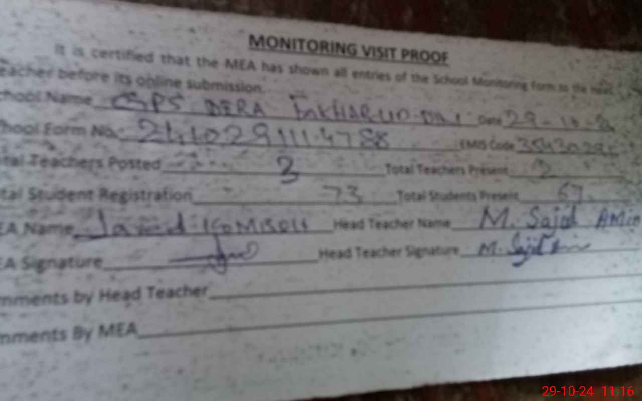 | EMIS Code: 35430291 | Name of School: GPS DERA FAKHAR UD DIN | |||