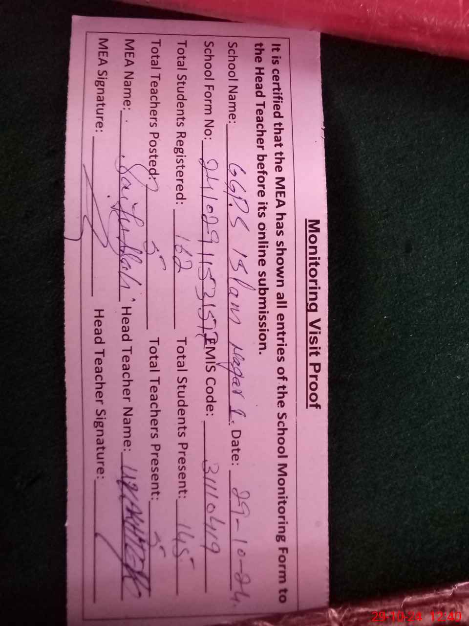 | EMIS Code: 31110419 | Name of School: GGPS ISLAM NAGAR NO. 1 | |||