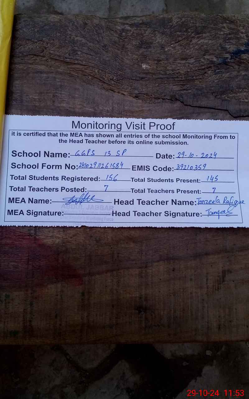 | EMIS Code: 39210359 | Name of School: GGPS 13 SP | |||