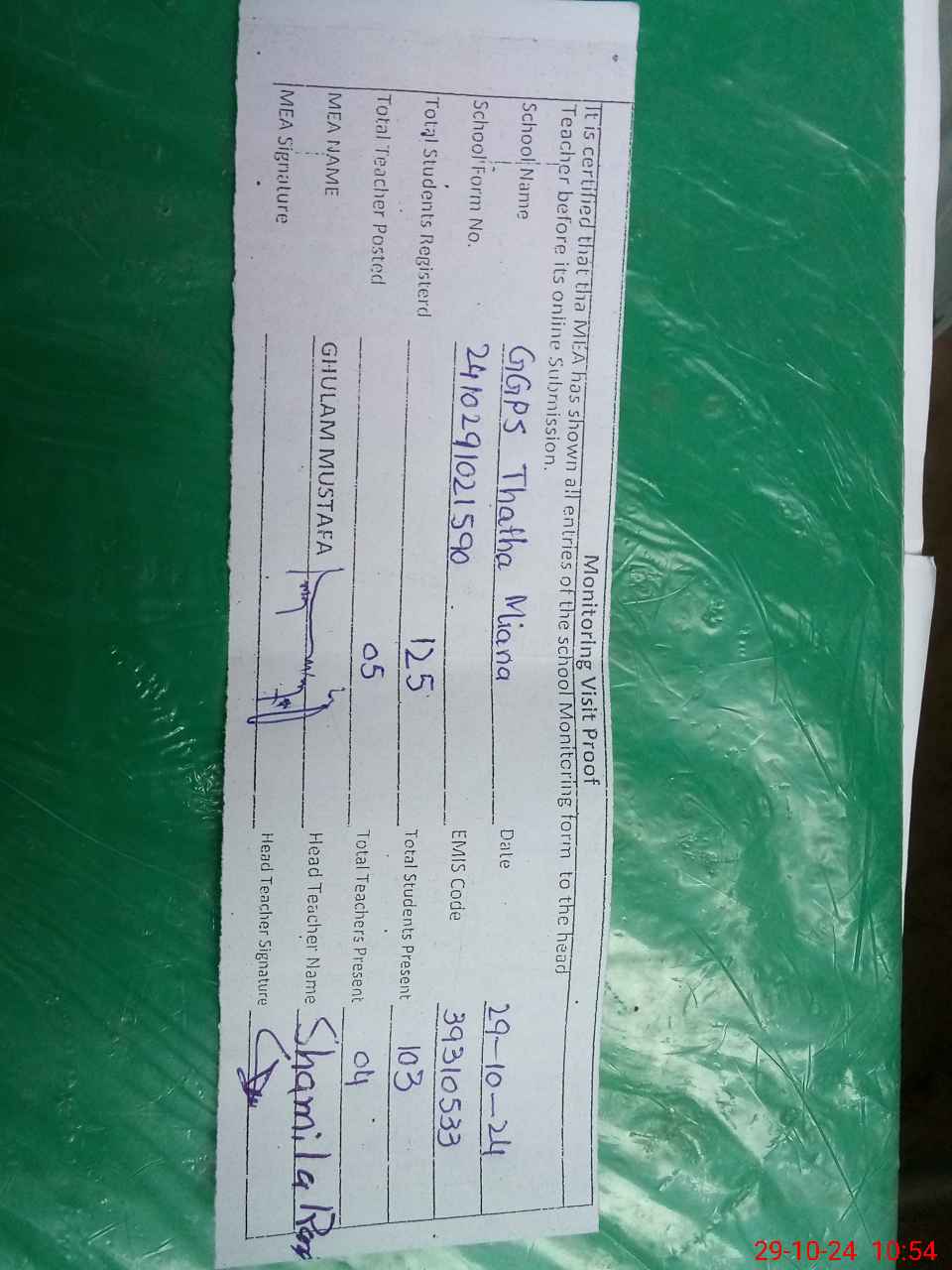 | EMIS Code: 39310533 | Name of School: GGPS THATHA MIANA | |||