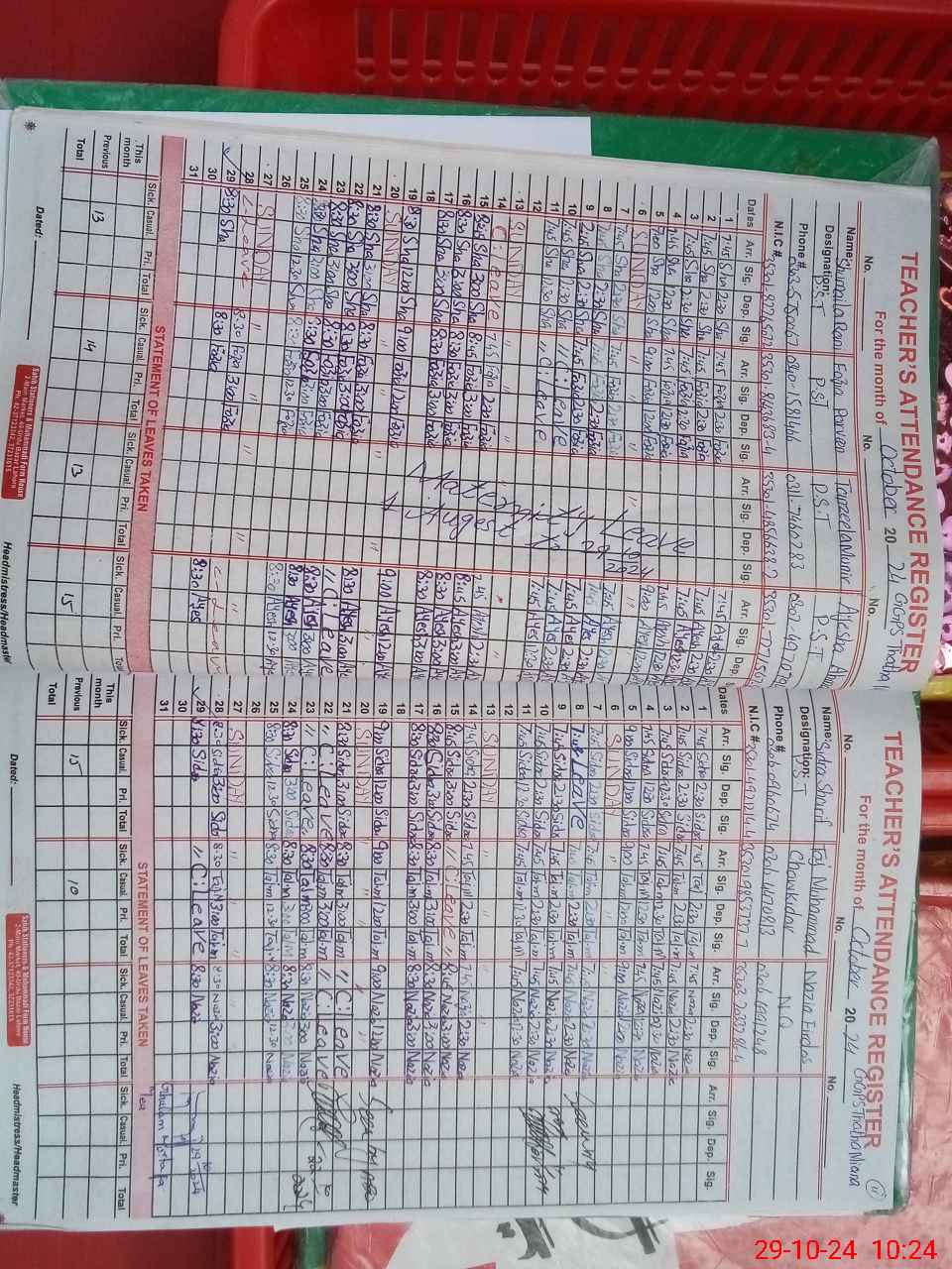 | Total no. of Classrooms: 3 No. of Classrooms Used for Teaching: 2 No. of Classrooms Storing Old Furniture, FTBs, etc: 0Comments if Any: Nominal roll for online attendance found contrary to current students records It is pertinent to mentioned here that Naib Qasida Nazia Firdous found present on her temporary duty The female N Qasida has already been detailed to perform her duty here TH |