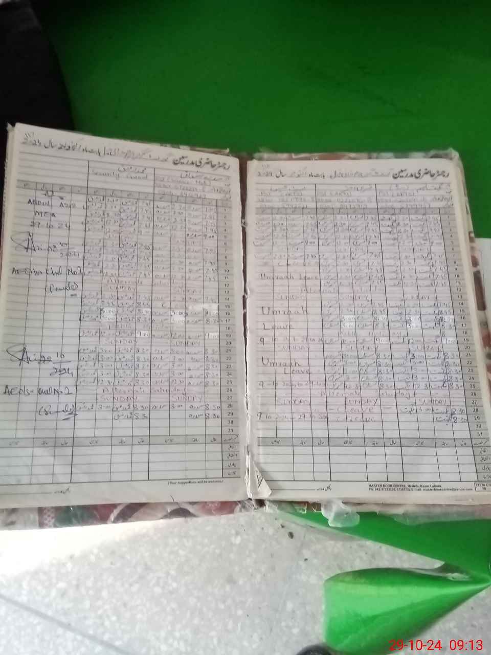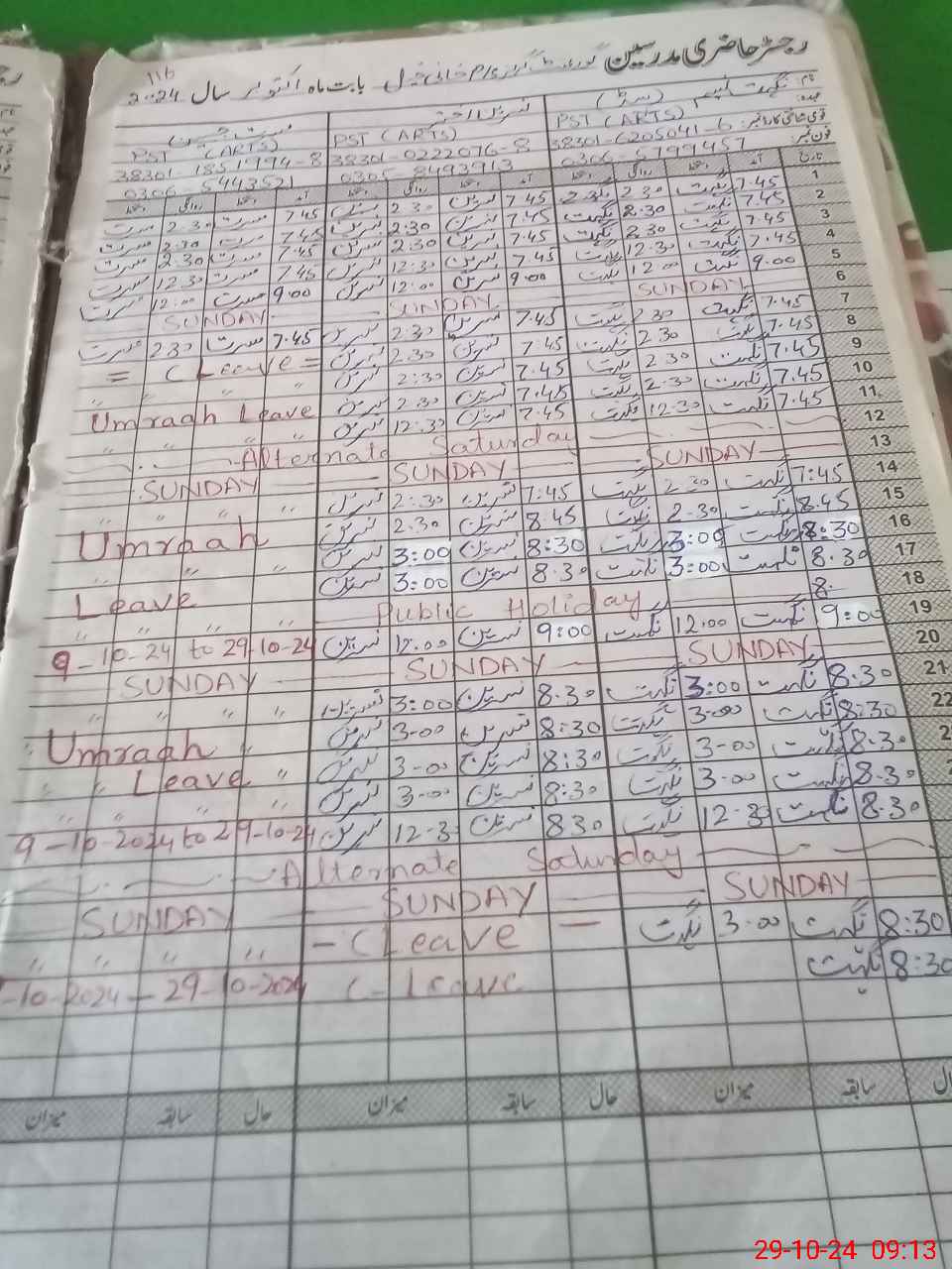 | CNIC | Full Name | Designation | R/C | Absence During Last Calender Month |