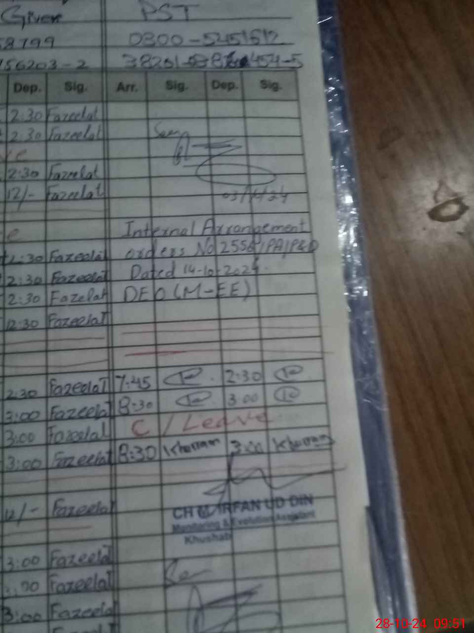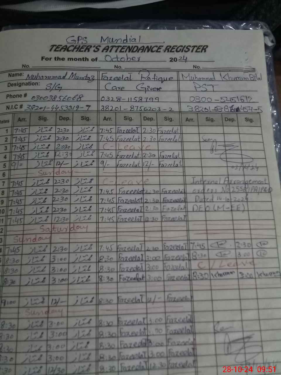 | Name: MU**** IS**** Designation: (School Headmaster's/Headmistress's) PST Phone/Cell Number: 03**** |