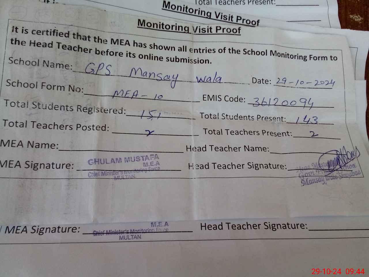 | EMIS Code: 36120094 | Name of School: GPS MANSAY WALA P/O JALAL PUR KHAKHI | |||