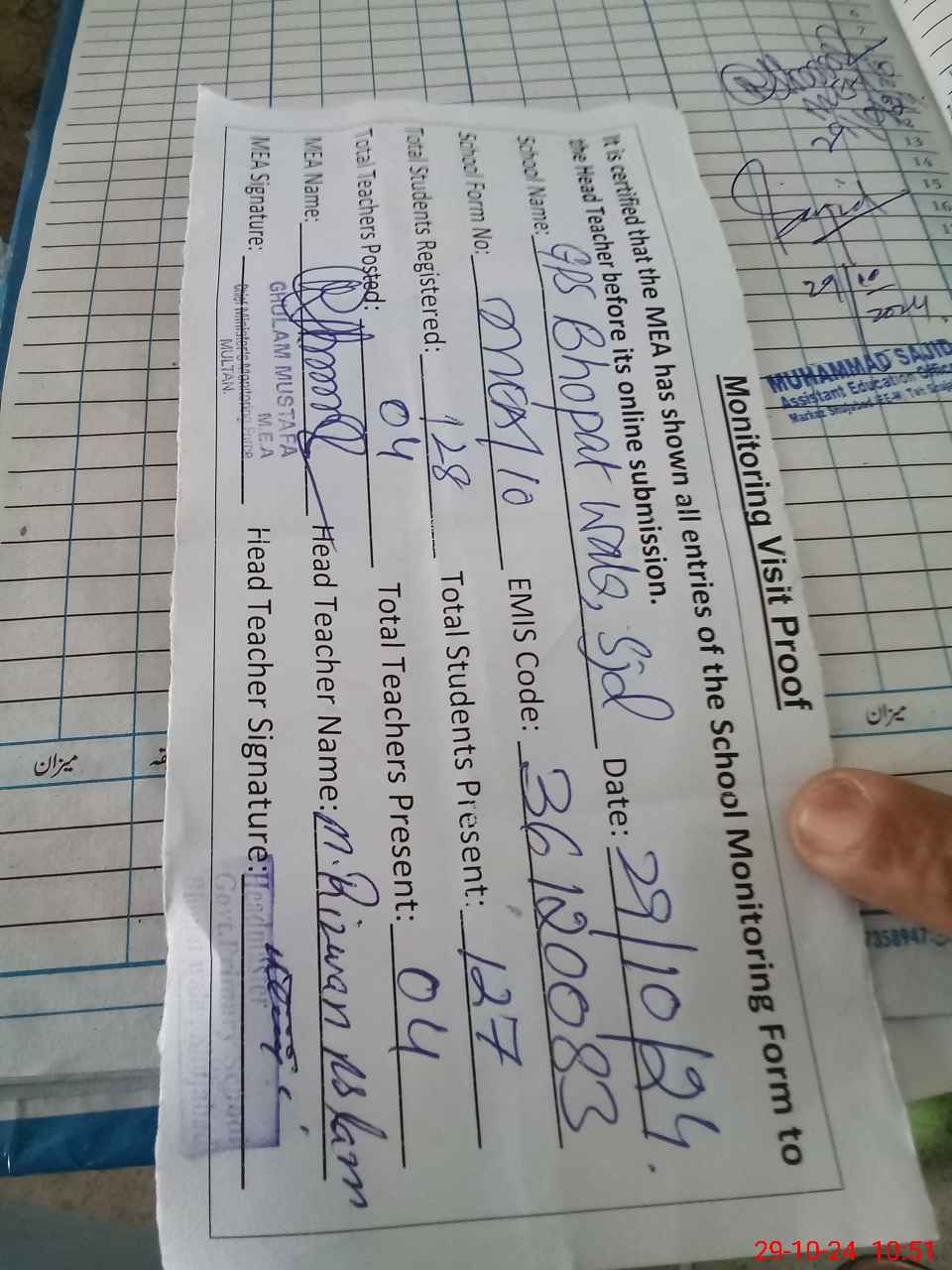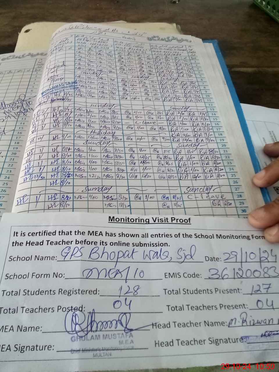 | EMIS Code: 36120083 | Name of School: GPS BHOPAT WALA P/O AGHARKHANI SHUJABAD | |||