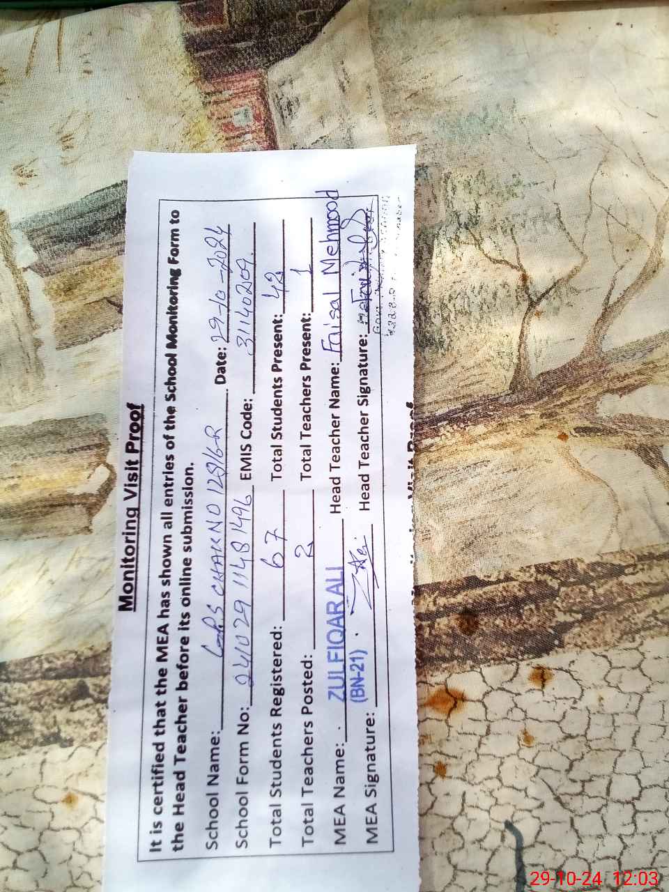 | Certified that this School was Inspected by the Undersigned MEA/DMO Today and the Information Stated Above is as Per Record. | |||||