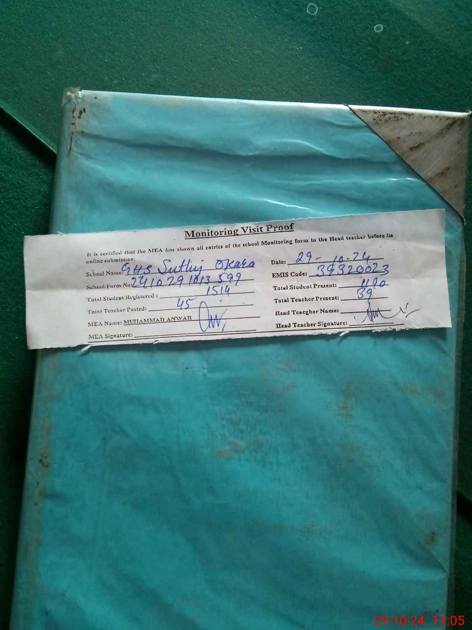 | EMIS Code: 39320023 | Name of School: GHS SUTLUJ OKARA | |||